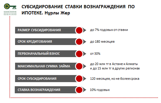 Для стимулирования спроса на ипотеку среди населения РК одним из направлений государственной программы жилищного строительства «Нурлы жер» является субсидирование ставки вознаграждения по ипотечным займам.