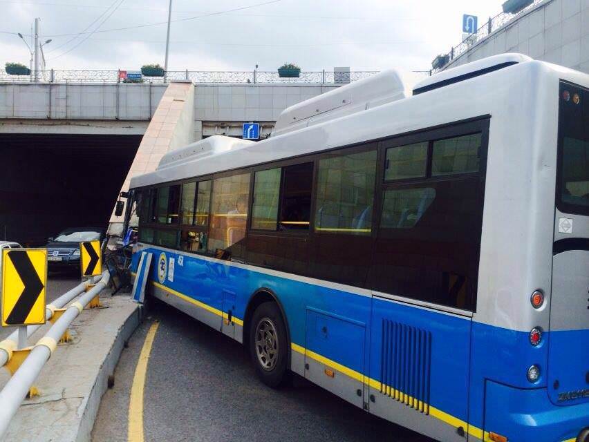 По одной из версий водитель рейсового автобуса маршрута № 92 не справился с управлением и допустил столкновение с одной из стен развязки. Другие очевидцы аварии заявляют, что автобус «подрезал» легковой автомобиль.
