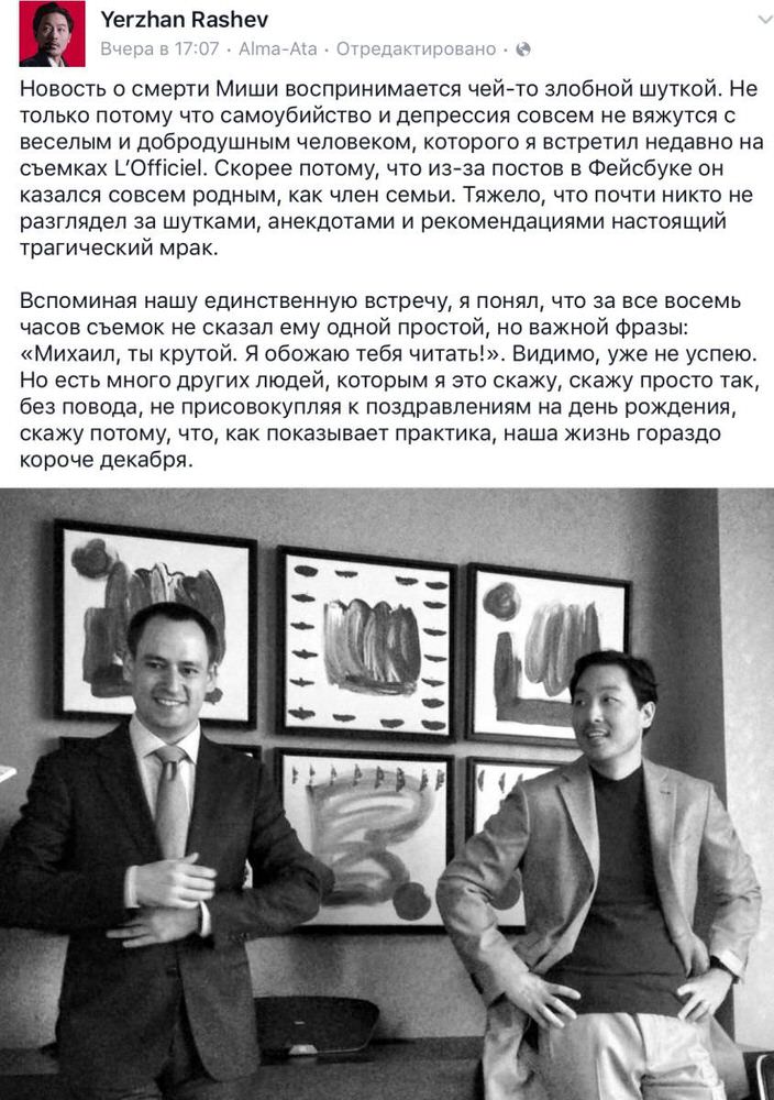 Десятки пользователей социальных сетей, не веря в произошедшее, писали посты со словами соболезнования и буквальным отрицанием официальной версии следствия. Никто не хотел верить, что молодой мужчина в самом расцвете сил и карьеры мог пойти на такой шаг.