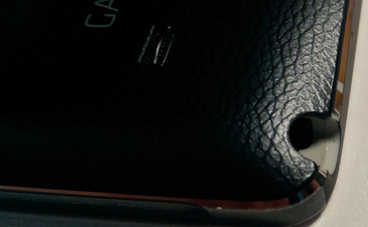 На форуме выложили фотографию Samsung GALAXY Note 4, на которой видно, что рамка новинки облезла, обнажив пластик