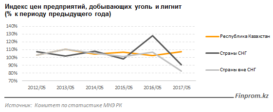 Сезон скидок в текущем году был открыт при поддержке роста цен на уголь для местных потребителей - за январь-май 2017 года индекс цен производителей вырос на 7,5%.