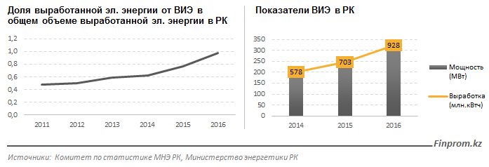 За 2016 год выработка электроэнергии от возобновляемых источников энергии (ВИЭ) увеличилась на 32% – до 928 млн кВтч. Установленные мощности ВИЭ увеличились на 18% – до 296 МВт.