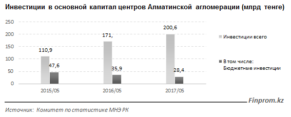 Центры Алматинской агломерации активно привлекают инвестиции в основной капитал - плюс 17% за пять месяцев текущего года.
