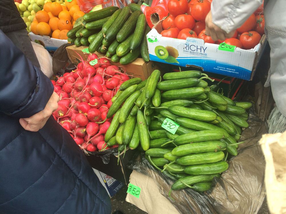 Пользователи социальных сетей активно отреагировали на заявление представителя НПП и стали делиться фотографиями огурцов с прилавков рынков и магазинов. Редакция тоже не осталась в стороне. Первым делом журналисты исследовали цены на ярмарке, которая проходит у торгового центра «Евразия». Именно там, по словам Ербола Есенеева, он покупает огурцы по 300 тенге за кг.