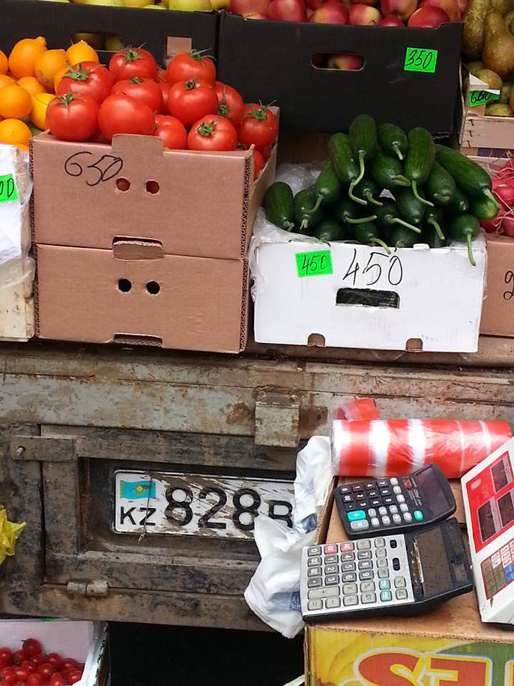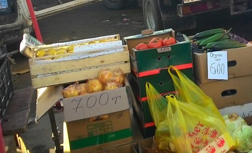Здесь же можно приобрести огурцы за 350 тенге, вот только пригодны ли они для употребления в пищу - большой вопрос. По словам торгующих, в определенные часы они продают овощи ниже себестоимости, так как ожидают проверку. Кто проверяет, они не знают, знают только, что могут лишиться торгового места из-за высоких цен. После «проверочного» времени предприниматели вынуждены завышать цены, чтобы «отбить» расходы.