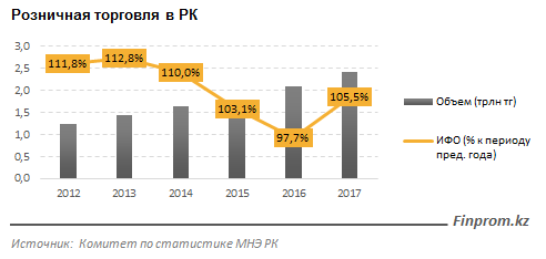 Напомним, что в 2016 году объемы торговли в стране сокращались на протяжении 8 месяцев, за 4 месяца прошлого года товаров на внутреннем рынке было продано на 2,3% меньше, чем годом ранее.