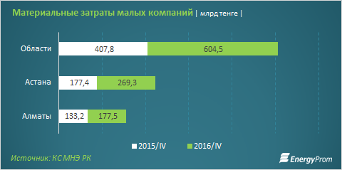 Также укрепились позиции регионального бизнеса по количеству действующих малых компаний. К 2015 году число работающих малых компаний в областях увеличилось на 14 тысяч до 107,8 тысяч. Соответственно, удельный вес вырос с 53,4 до 54%.