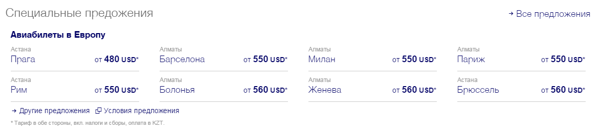 Ценники в долларах можно наблюдать у иностранных авиакомпаний. Так, голландская компания KLM и немецкая компания Lufthansa спешат предложить казахстанцам заманчивую скидку на авиаперелеты в страны ЕС и Америку.