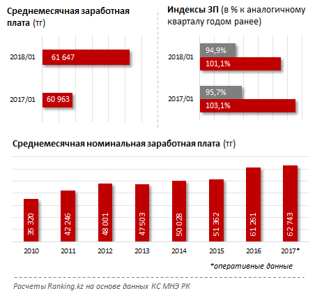 Среднемесячные заработные платы работников сферы дошкольного образования составили по итогам I квартала всего 61,6 тысячи тенге — это лишь на 1,1% больше, чем в аналогичном периоде годом ранее.
