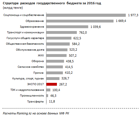 В структуре расходов госбюджета за 2016 год на ЭКСПО пришлось 3% всех средств.