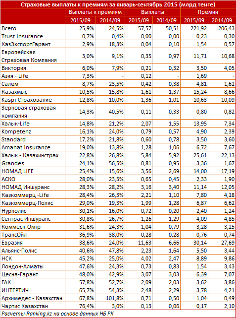 Уровень страховых выплат приближается к максимуму - за девять месяцев 2015-го он вырос до 26% от совокупных премий, сообщают аналитики Ranking.kz.