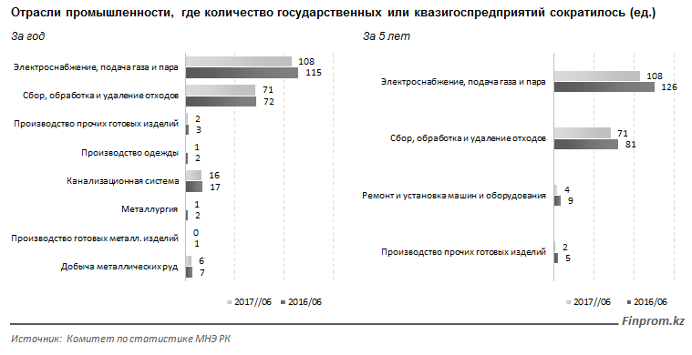За последние 5 лет количество госпредприятий сократилось на 16,8%, или на 61 организацию. За этот же период количество предприятий с государственным участием выросло сразу на 45,7%, или на 42 компании.
