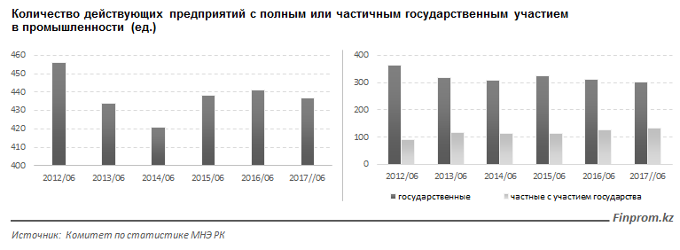 Всего в РК насчитывается 437 промышленных предприятий с полным или частичным государственным участием.