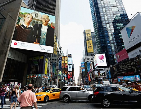 4 августа на Таймс-сквере отпраздновали старт проекта Art Everywhere, который превратил 50 тысяч билбордов по всей стране в огромный уличный музей. На них до конца лета будут демонстрироваться репродукции 50 знаменитых картин, которые были выбраны американцами в ходе голосования. Сильнее всего жителям США хотелось увидеть «Полуночников» Эдварда Хоппера из собрания Художественного института Чикаго, а также портрет Джорджа Вашингтона, написанный Гилбертом Стюартом, «Айсберги» Фредерика Эдвина Черча и «Голливуд» Эда Рушей.