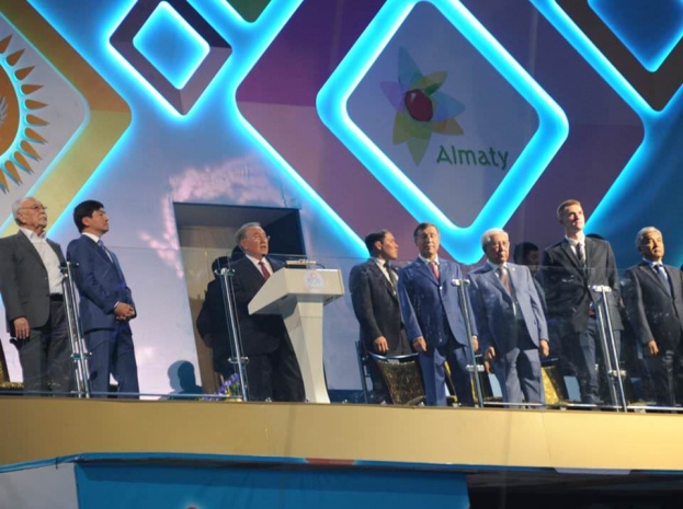 «Уважаемые казахстанцы! 1000-летие Алматы отмечается в мире. Священна земля у подножия Алатау, здесь проходил великий шелковый путь, соединивший огромную Евразию. Вся земля Жетысу стала колыбелью цивилизации. Особую роль сыграл Алматы в 20-м веке – ему выпала честь быть столицей. Символично, что 1000-летие отмечается в 25-летие независимости. Здесь я подписал соглашение о независимости. Заботу об Алматы, самом красивом городе, я всегда считал и считаю первостепенной задачей. Все эти годы развитие города я контролирую лично. Только за пять предыдущих лет территория города выросла. Алматинский метрополитен – единственный в Казахстане. Следующей заботой стало строительство Большого алматинского кольца в рамках программы «Нурлы жол». Этот город становится центром транзита, он станет частью пути «Западная Европа - Западный Китай». Мы народ, которой ищет инновации. В городе стартует Универсиада. Создано более 30 тысяч рабочих мест. Наша страна работает над крупнейшими индустриальными программами. В рамках «Нурлы жол» будут построены миллионы квадратов жилья. Все делается на благо вас, алматинцы. Дорогие алматинцы, главное богатство тысячелетнего города – это вы. Здесь всегда царит атмосфера дружелюбия, Алматы всегда останется самым любимым, зеленым и развитым городом страны. Всегда, и в мою молодость, люди стремились приехать в Алматы. Это моя малая Родина, я ваш земляк. Стараюсь попасть в горы, напитаться энергией. Я поздравляю алматинцев с тысячелетием», - высказался Назарбаев.
