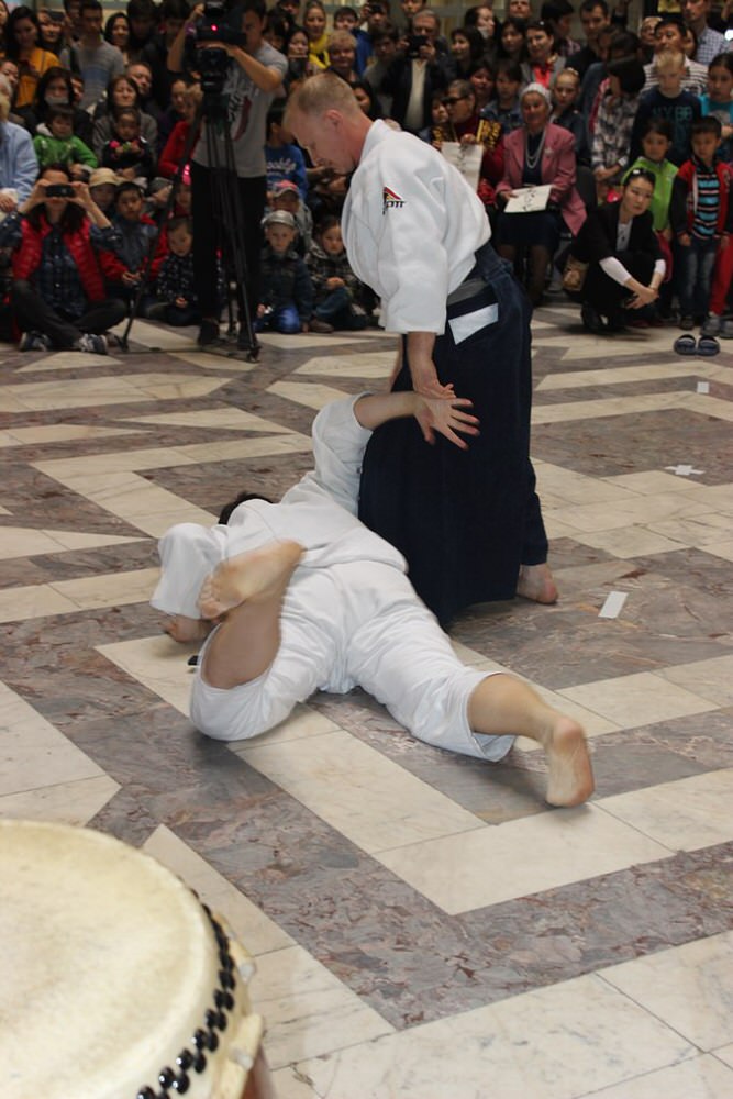 Также на дне японской культуры в Алматы свое мастерство показали приверженцы разных школ Айкидо. Это боевое искусство акцентируется на слиянии с атакой противника и перенаправлении энергии атакующего.