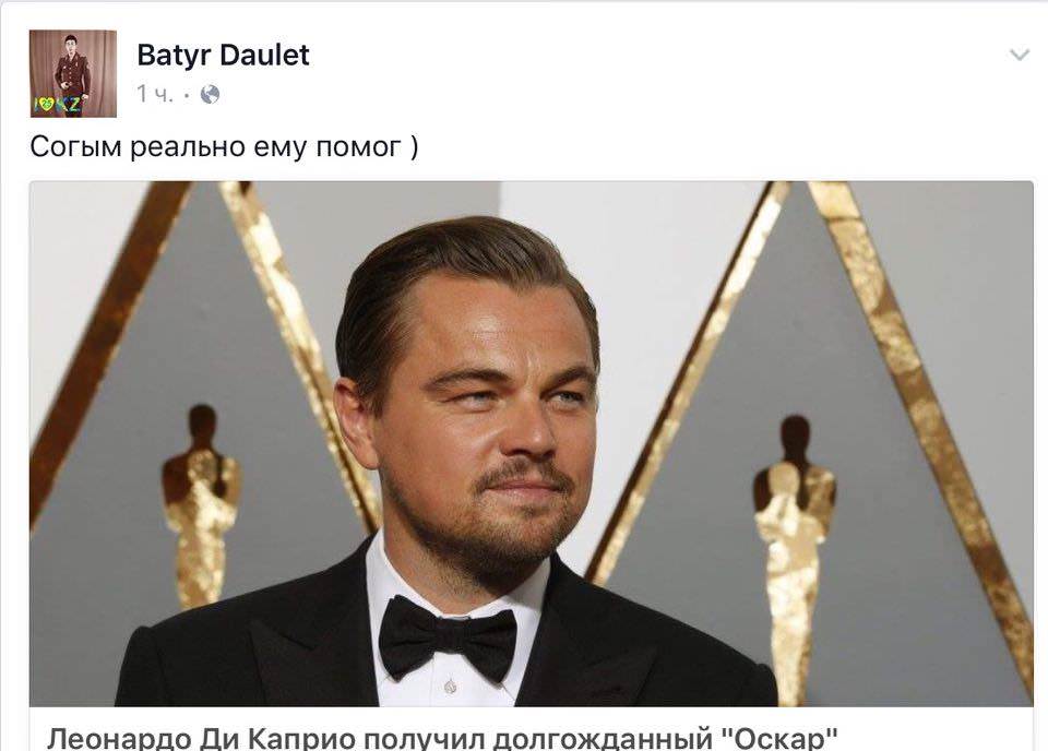 Напомним, сегодня известный голливудский актер Леонардо ДиКаприо получил премию американской академии кинематографических искусств и наук в номинации «Лучшая мужская роль» в фильме «Выживший». Это первая и долгожданная статуэтка легендарного актера.
