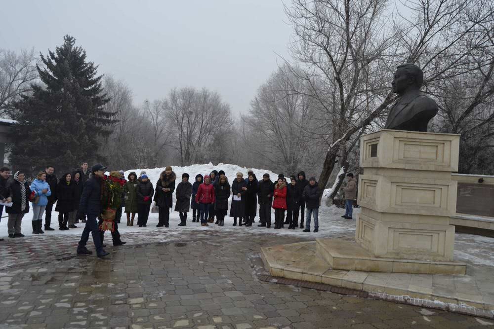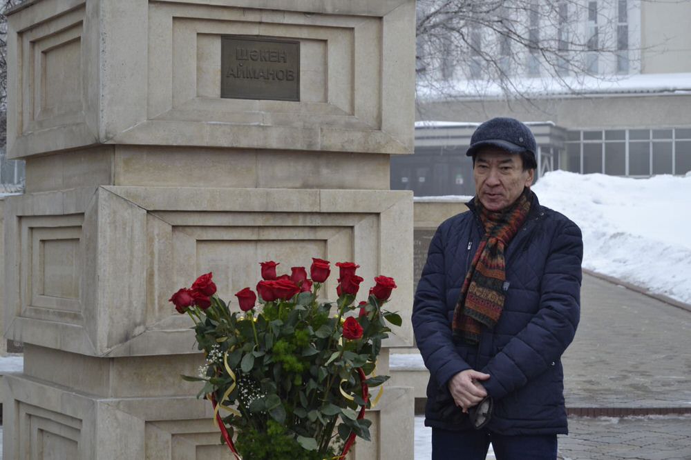 На торжественном мероприятии в честь 103-летия со дня рождения основоположника казахского кино, кинорежиссера, народного артиста СССР, лауреата государственной премии СССР, лауреата государственной премии Казахской ССР, члена союза кинематографистов СССР, актера театра и кино Шакена Айманова состоялось возложение цветов к его памятнику. У памятника собрались руководители киностудии, представители творческой интеллигенции – режиссер Сатыбалды Нарымбетов, актеры Нурлан Санжар и Ерболат Тогузаков, сопредседатель Союза кинематографистов Казахстана Ахат Ибраев, а также сотрудники «Казахфильма».