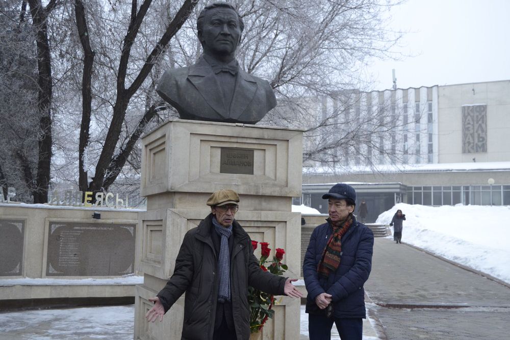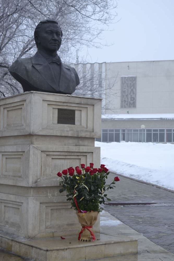 К памятнику Шакена Айманова в честь дня его рождения возложили цветы, передает Total.kz со ссылкой на пресс-службу «Казахфильма».