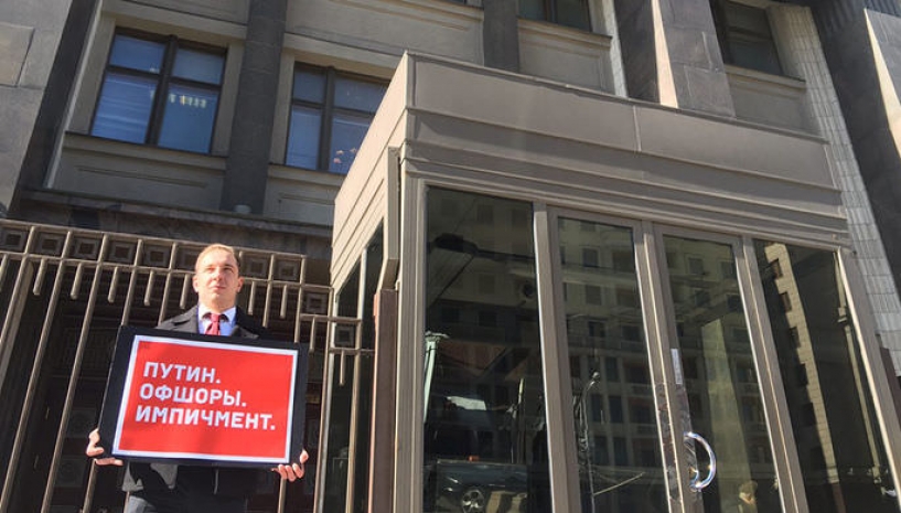 У здания Государственной думы задержаны участники серии одиночных пикетов, которые требовали объявить импичмент президенту России Владимиру Путину в связи с публикацией журналистского консорциума о возможной причастности Путина к офшорным сделкам, передает «Газета.ру».