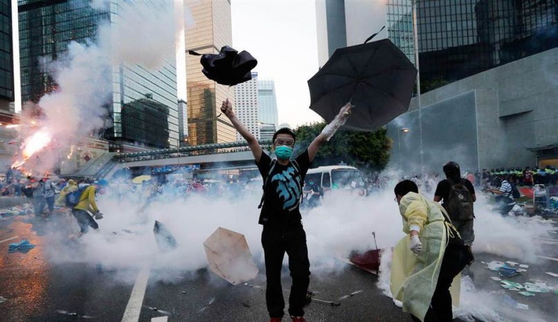 Полиция в Гонконге применила перечный газ для разгона протестующих, которые вновь пытались перекрыть основную магистраль города.