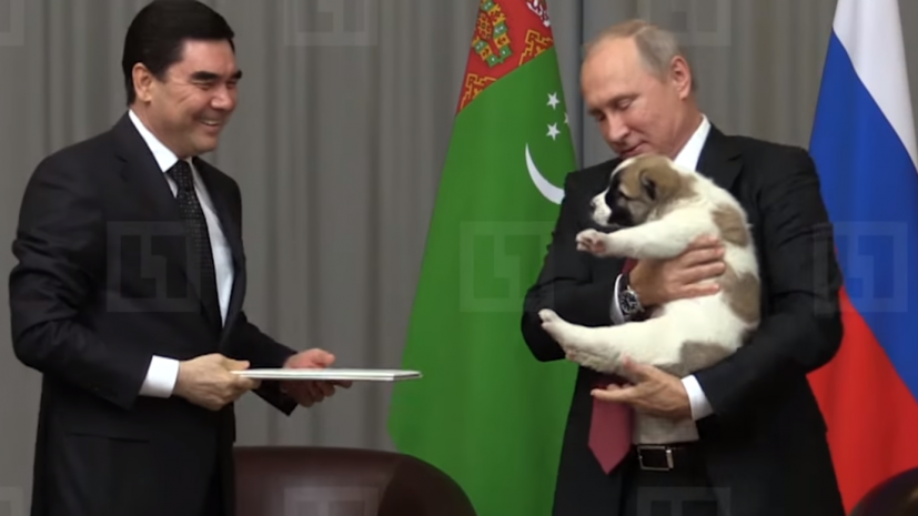 «У нас есть общий один друг — это единственная в мире собака алабай. И я сегодня привез с собой этого маленького алабая. Собаке дали кличку Верный», — добавил президент Туркмении.