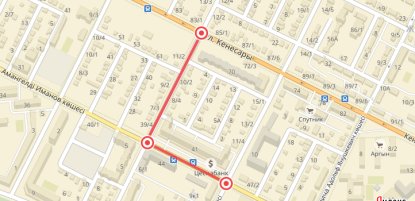 С 7:00 до 22:00 21 мая для проезда автомобильного транспорта закрыт участок улицы Брусиловского между улицами Кенесары и Иманова.