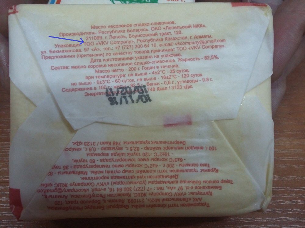 Комитетом по защите прав потребителей МНЭ РК выявлен факт производства поддельного сливочного масла отечественной компанией ТОО VKV Company, расположенной в Алматы, сообщает Total.kz со ссылкой на официальный сайт ведомства.