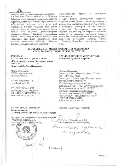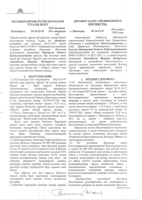 Деньги на приобретение квартиры были взяты мною по ипотечному займу через АО «Жилищный строительный сберегательный банк Казахстана». Ежемесячные выплаты по займу производятся из моей заработной платы.