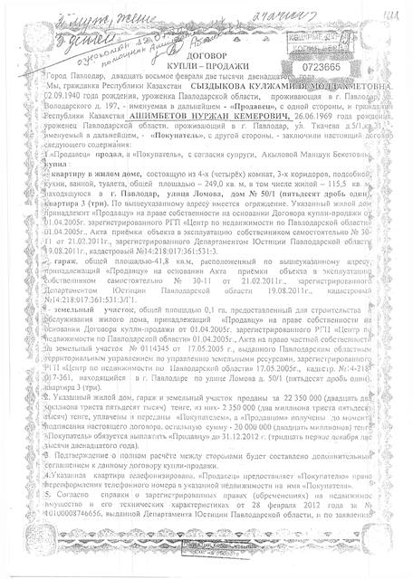 «4-х комнатная квартира жилой площадью 115,5 кв. м по указанному адресу была приобретена мною в 2012 году у частного лица за 22 350 000 тенге, – говорит Нуржан Ашимбетов, – Я являюсь уже третьим собственником данной квартиры и соответственно к приватизации этого здания никакого отношения не имею».