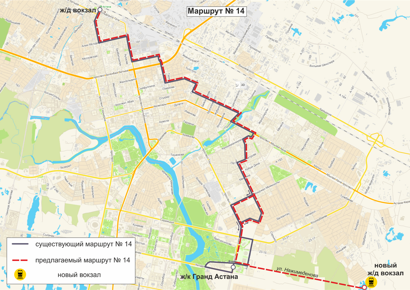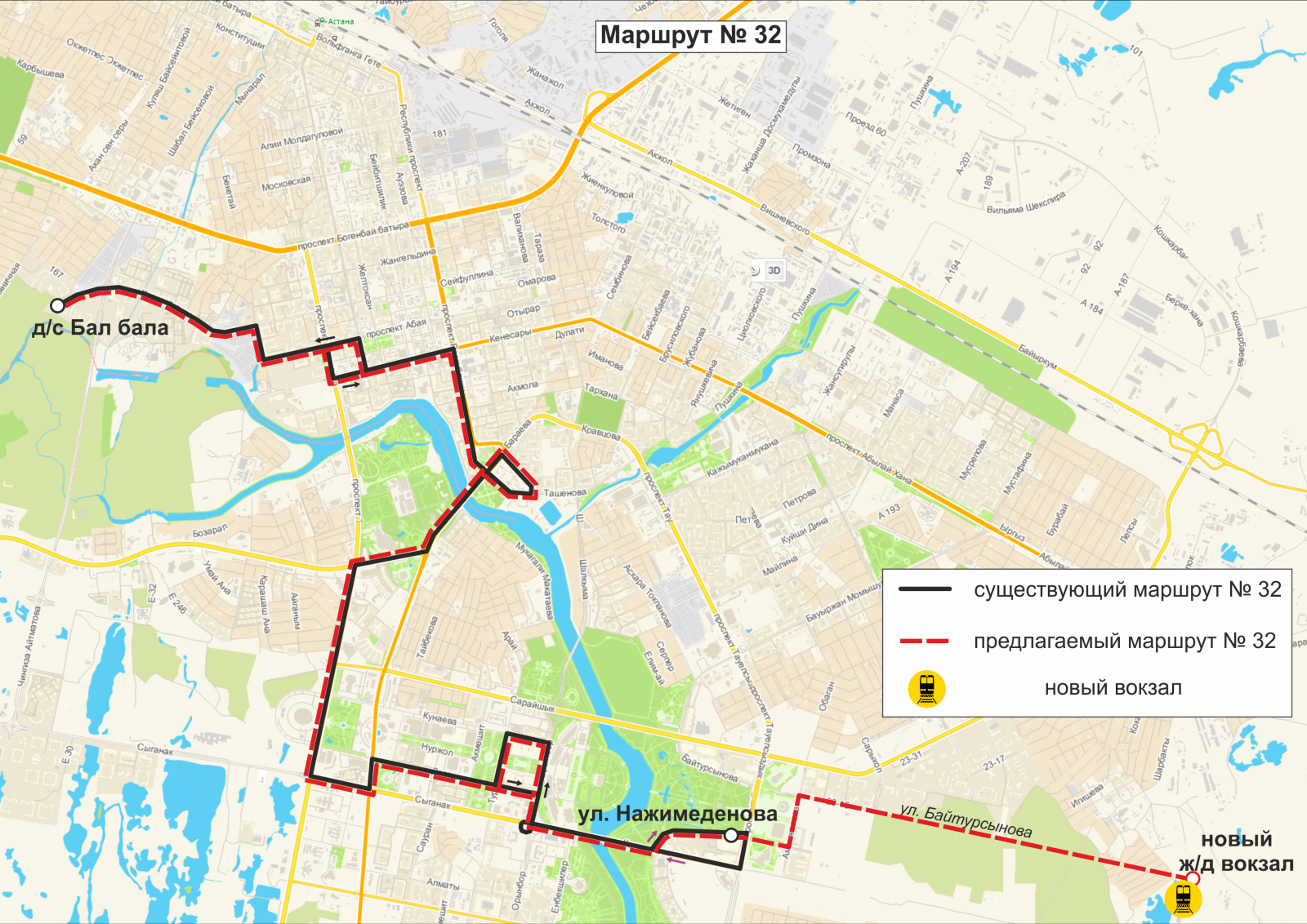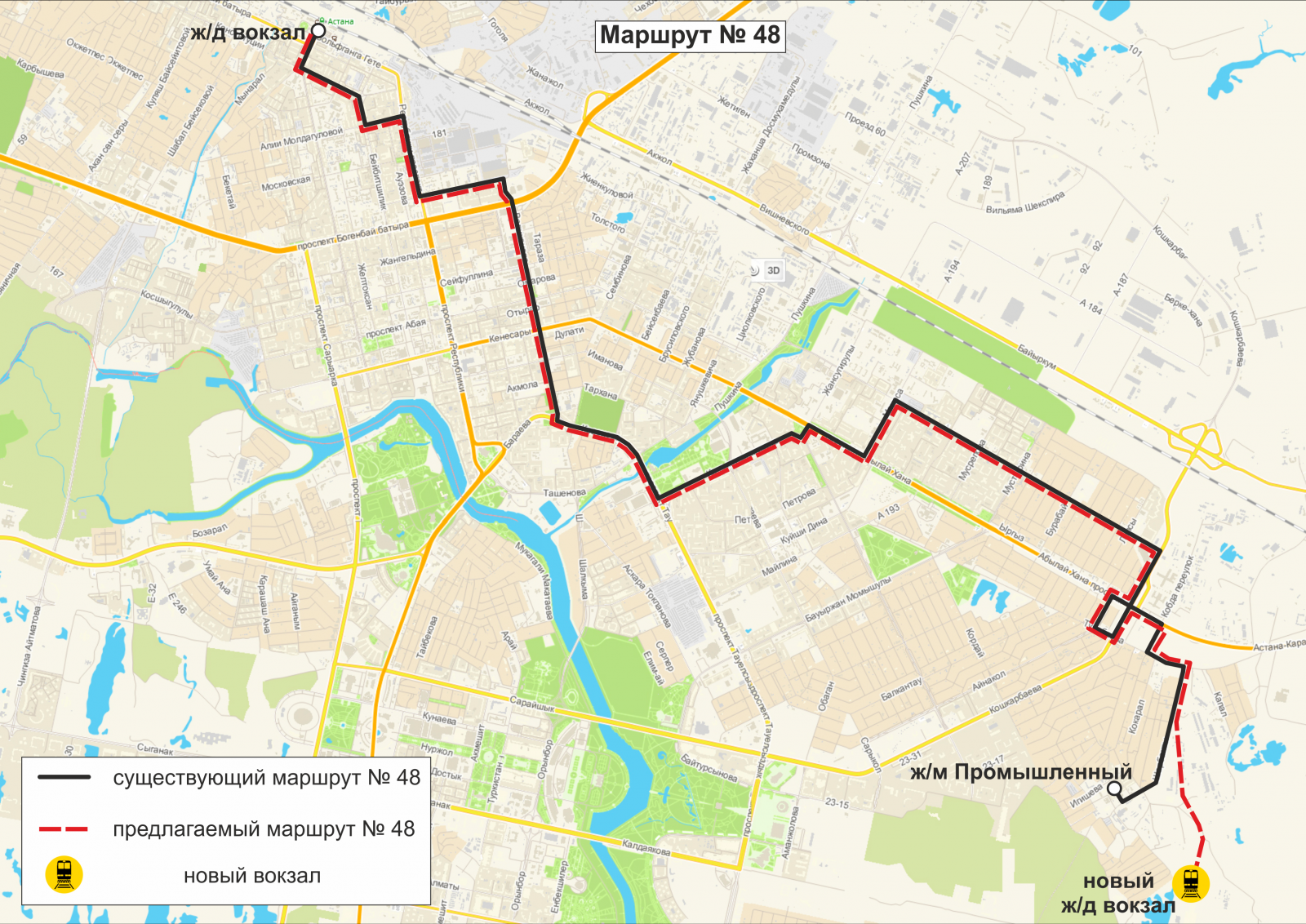 В связи с запуском нового железнодорожного вокзала «Нұрлы жол» и с целью организации движения автобусов до указанного объекта с 1 июня 2017 года будут продлены городские маршруты № 2, 14, 32, 48, 50.