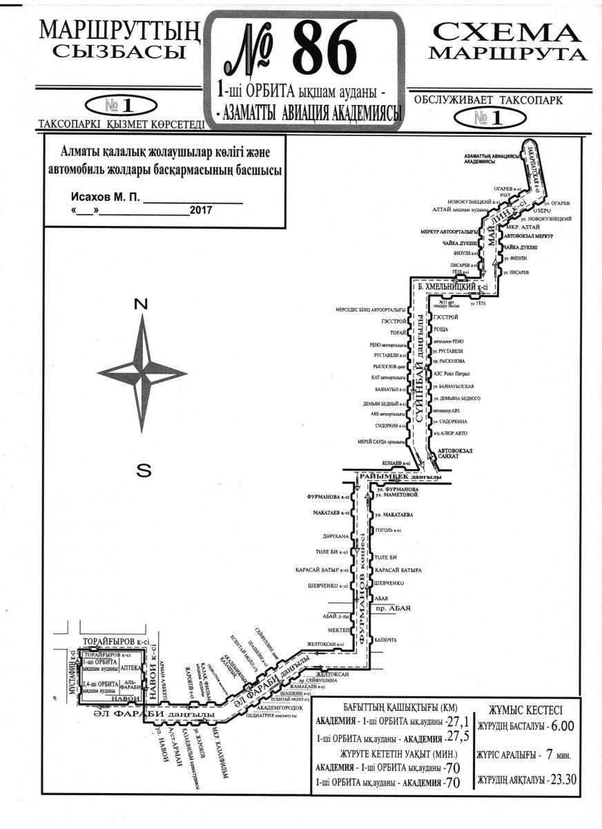 В связи с дублированием автобусного маршрута №86 на участке от пр. Суюнбая до мкр-на «Горный гигант» управлением пассажирского транспорта и автомобильных дорог г. Алматы внесены изменения в схему маршрута №86.