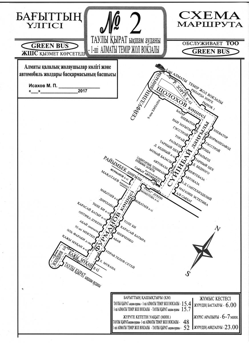 Обслуживание данного маршрута будет осуществлять ТОО «Greenbuscompany».