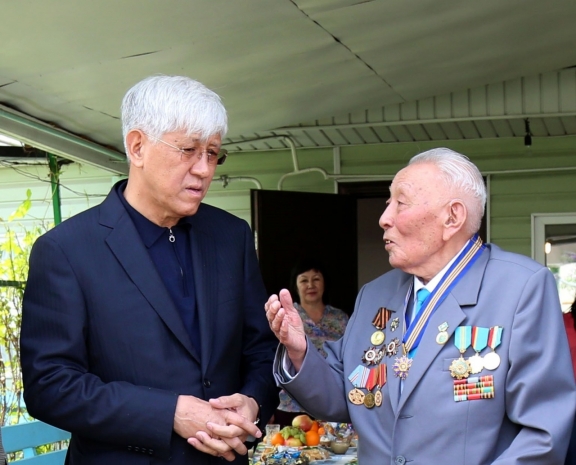 С Днем Победы и со 100-летним юбилеем поздравил сегодня аким Алматинской области Амандык Баталов ветерана, учителя президента страны Сейтхана Исаева, передает Total.kz со ссылкой на акимат Алматинской области.