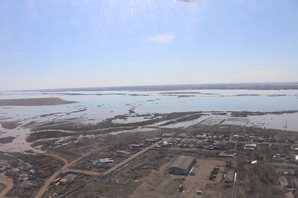 При облете произведен осмотр территории населенного пункта Киевка Нуринского района, а также проверено состояние русел рек Нура и Шерубай-Нура. Маршрут облета пролегал через Шерубай-Нуринское и Ынтымакское водохранилища.