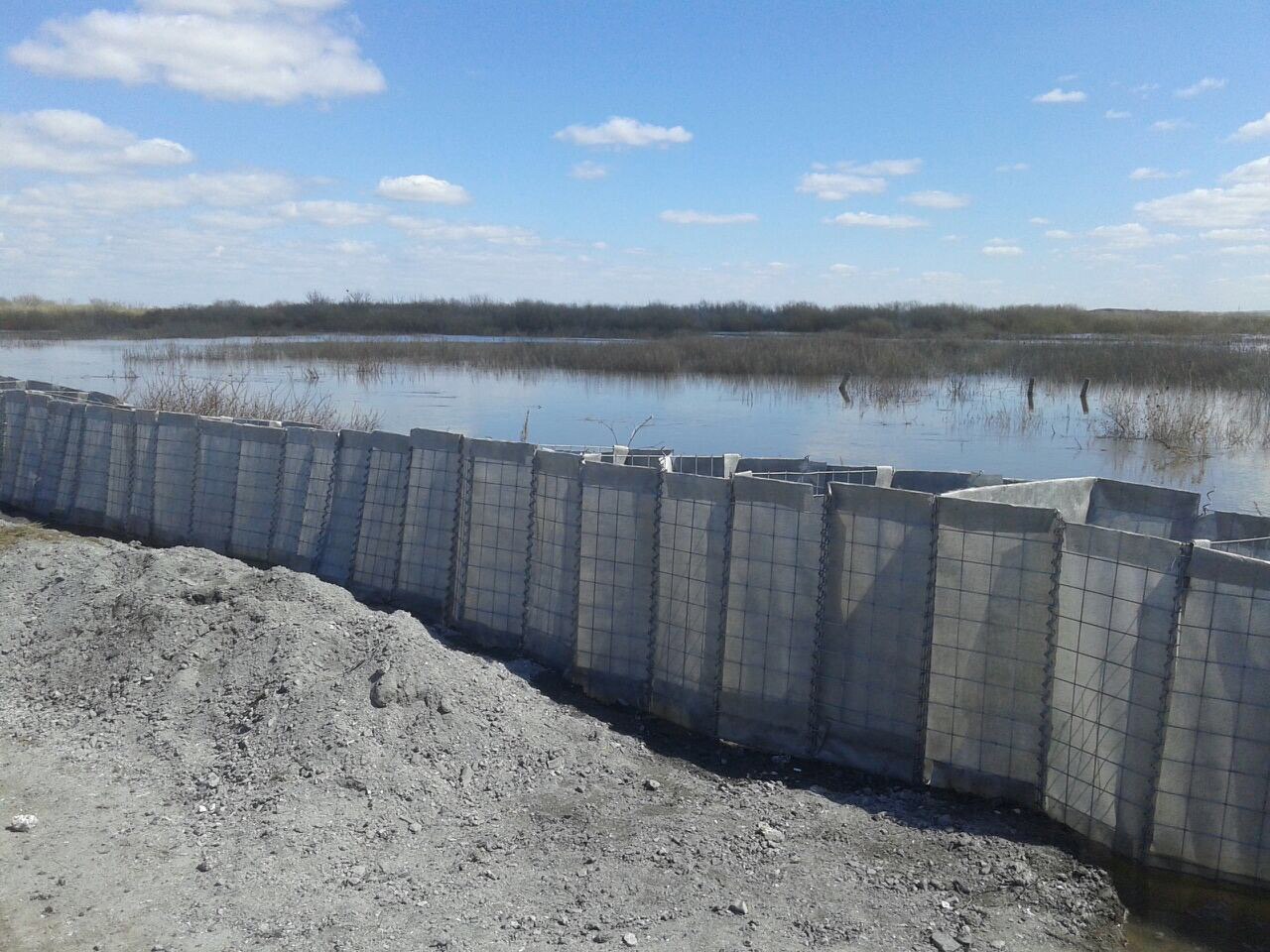 За прошедшие сутки установлено 68 единиц специальных защитных барьеров (габионы) длиной 340 метров в населенных пунктах села Тассуат и села Заречное Нуринского района.