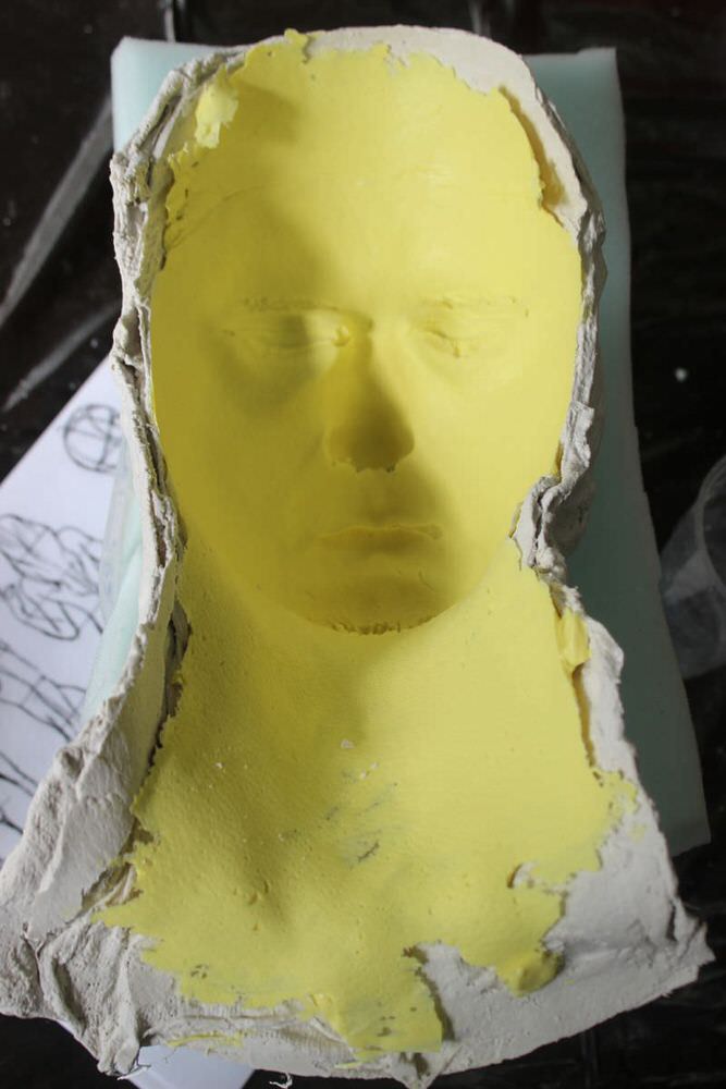 Далее на гипсовый слепок мастер накладывает вылепленные из глины части лица будущего персонажа. Такие заготовки в дальнейшем позволяют отлить идеально подходящие латексные накладки.