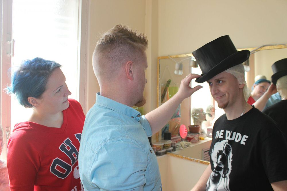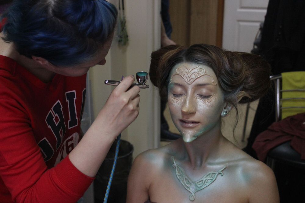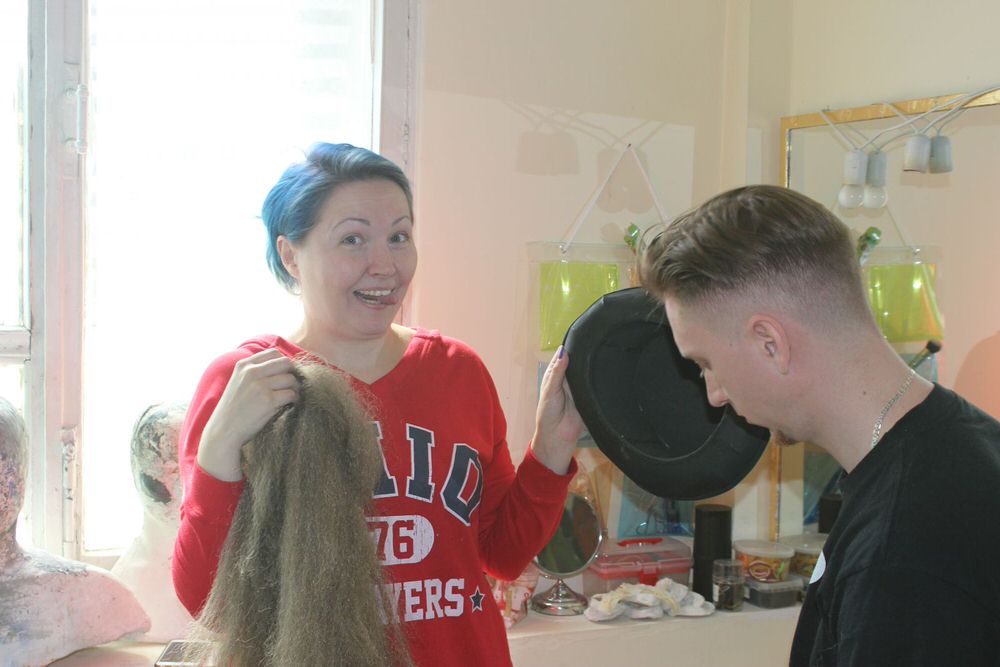Перед тем как начать перевоплощение, гример примеряет последние штрихи образа, выбирает прическу, подкрашивает крылья.
