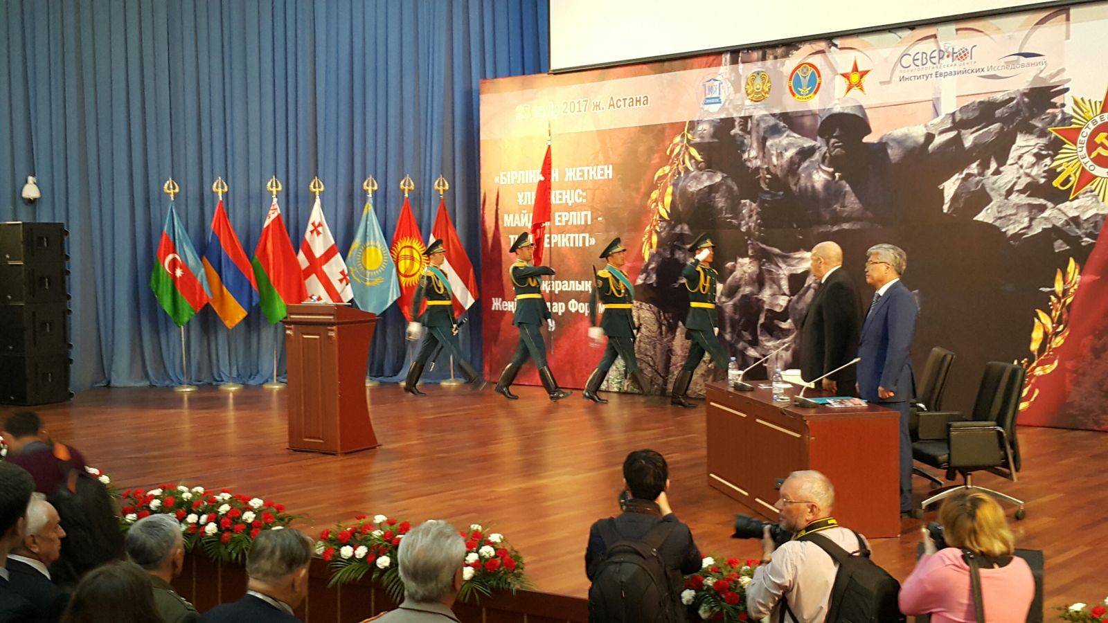 Сам форум проходит в национальном военно-патриотическом центре Вооруженных сил РК, где перед началом встречи участникам были зачитаны приветствия президентов РК и РФ Нурсултана Назарбаева и Владимира Путина. Главы государств пожелали делегациям плодотворной работы и напомнили о важности сохранения памяти, при этом выразив неприемлемость отдельных попыток искажения исторических фактов о героическом подвиге советского народа.