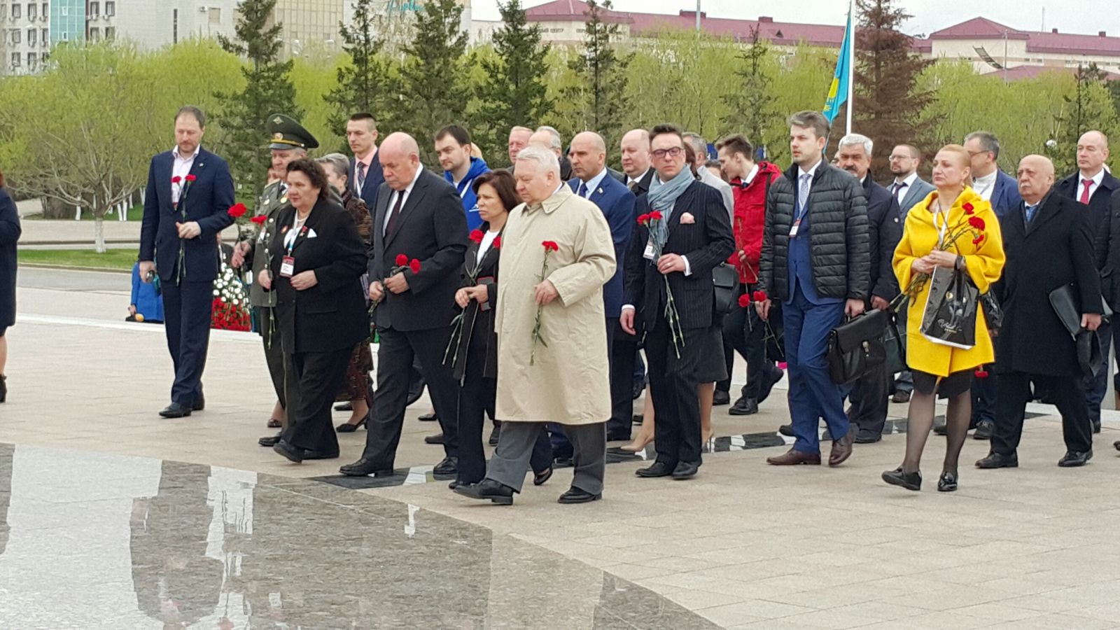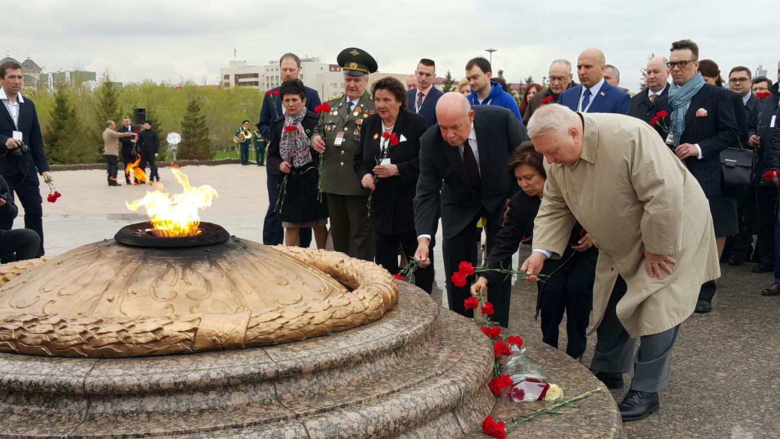 Утром участники встречи возложили цветы к Вечному огню на Площади Защитников и почтили память погибших в Великой Отечественной войне минутой молчания.