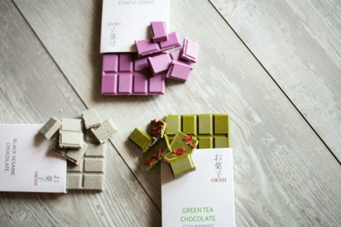 За основу берется белый шоколад с минимальным содержанием какао-бобов (26%). Зеленоватый оттенок шоколада получается путем добавления зеленого чая матча, японский батат окрашивает плитку в цвет темной сирени, а порошок из черного кунжута – в серый. За счет необычности продукта Митрофанову удалось проникнуть в ряд крупных российских розничных сетей, пишут «Ведомости».