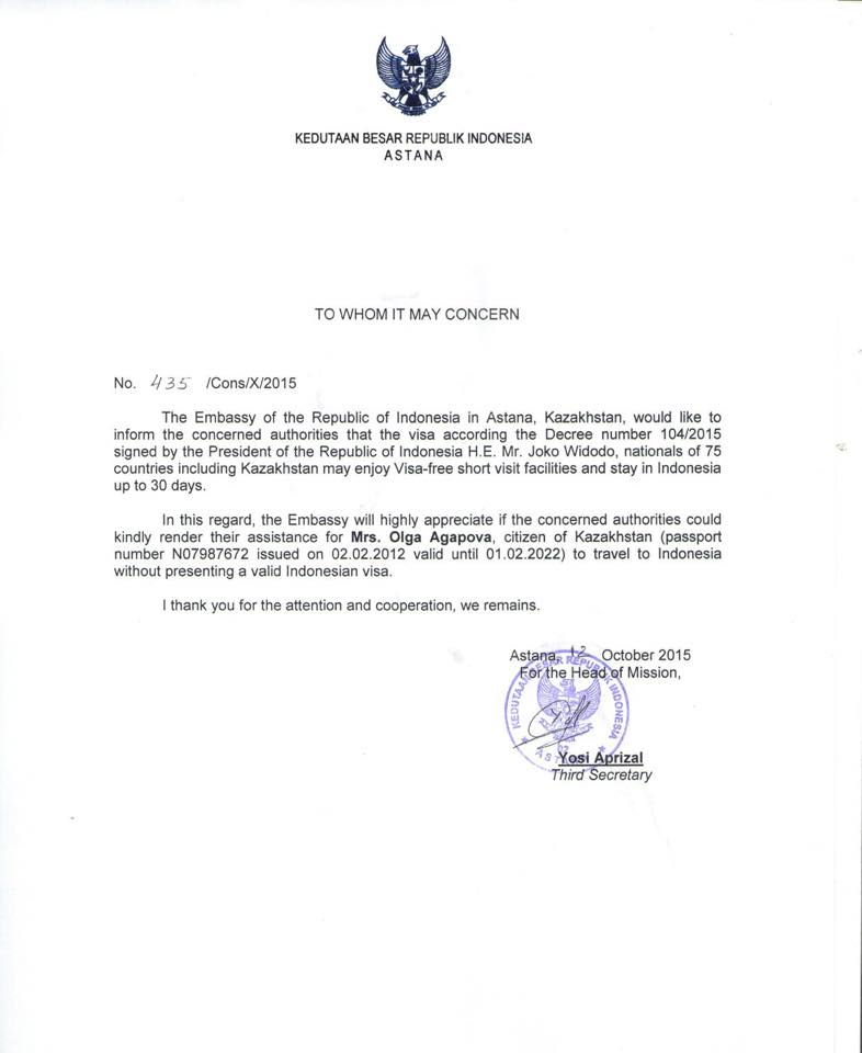 - Ольга, из каких источников вы узнали, что между Индонезией и Казахстаном введен безвизовый режим?