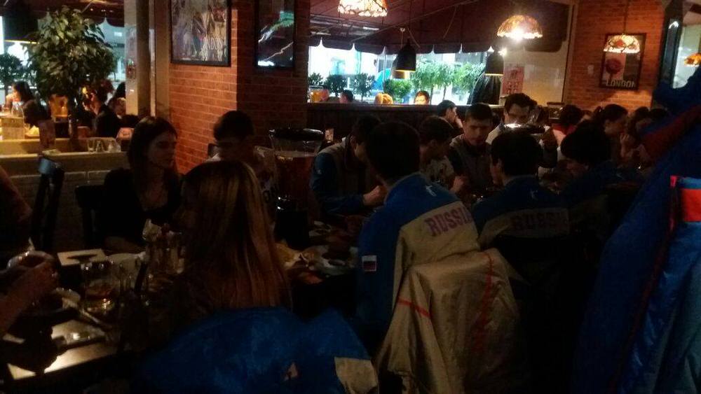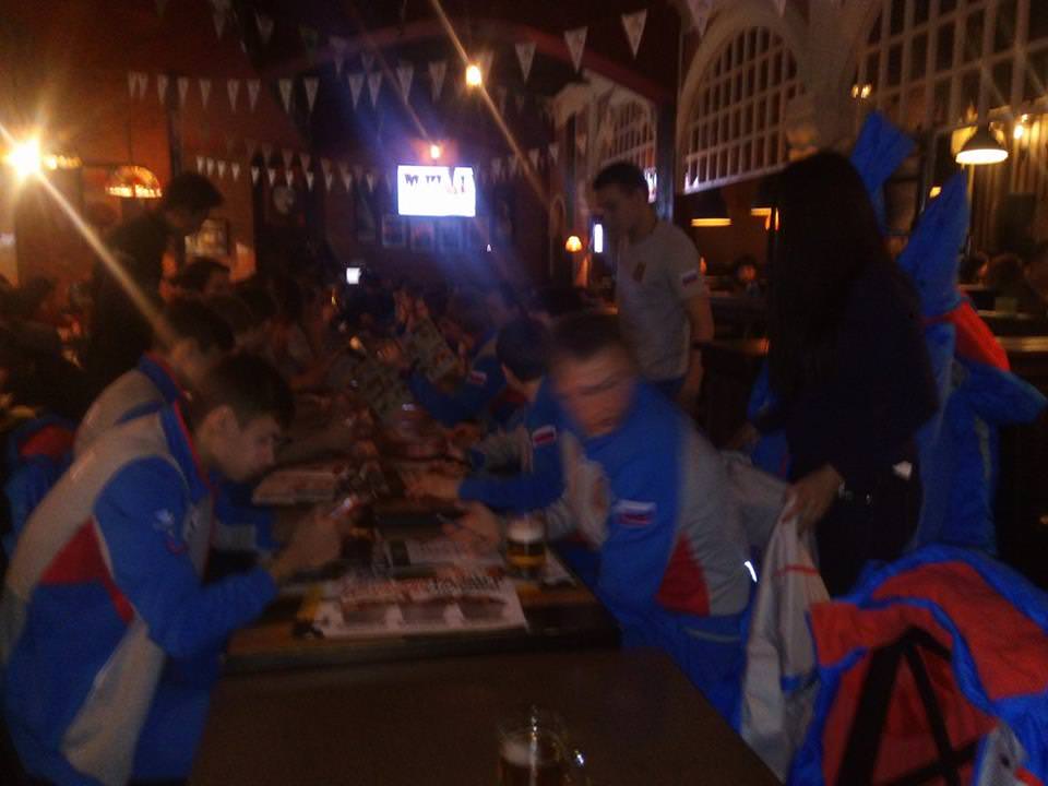 В целом атмосфера была спокойная, лишь изредка были слышны громкие тосты под единый гул – «УРА!». Некоторые посетители неуверенно стали подходить к спортсменам и пожимать им руки, брать автографы и фотографироваться с любимчиками.