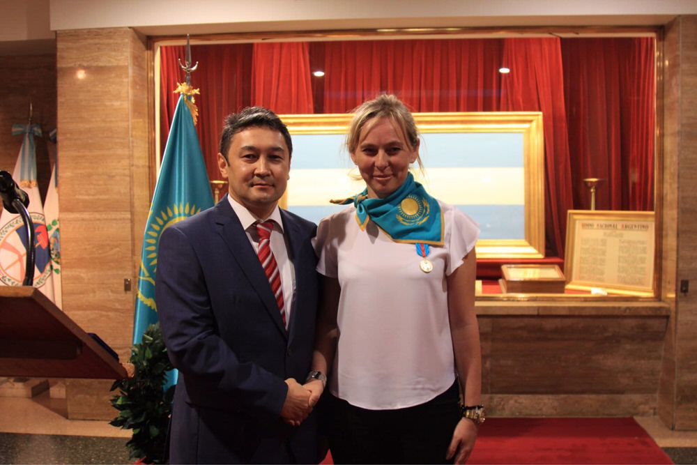 16 декабря блогеры отметили в кругу казахстанцев и аргентинцев в Росарио. В этом городе наша бывшая соотечественница Ирина Вагнер три года назад основала казахский культурный центр. В Аргентине уроженка Алматы живет уже 16 лет. За то, что Ирина Вагнер сумела объединить людей разных национальностей, интересующихся историей и культурой Казахстана, ее наградили юбилейной медалью в честь 25-летия независимости Республики Казахстан. Награду вручил посол Казахстана в Аргентине и Бразилии Кайрат Саржанов.
