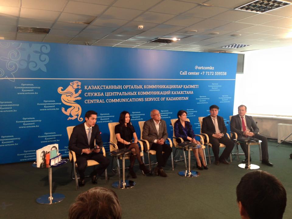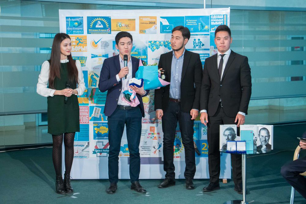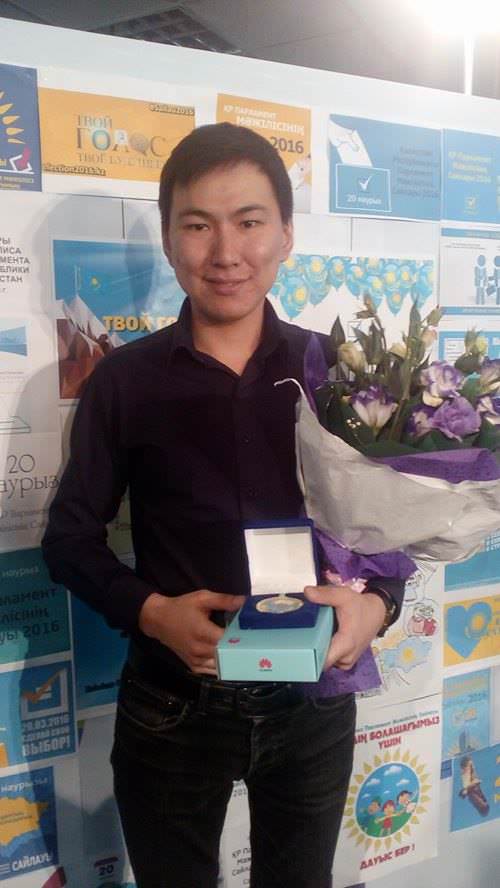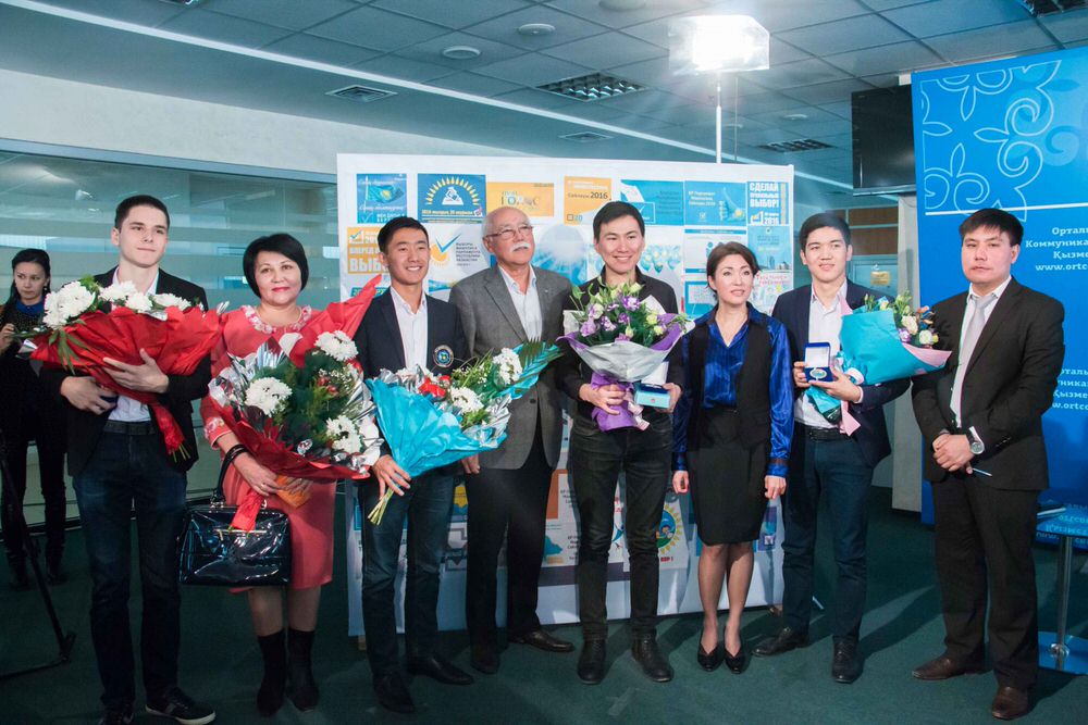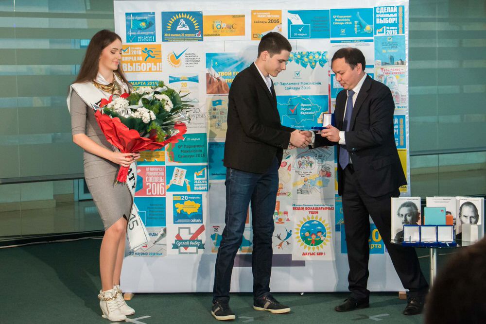 Алматинец Рауль Чукобаев получил третье место. Награду ему вручали Мисс Алматы-2015 Регина Вальтер и заместитель директора Службы центральных коммуникаций Нуржан Жумагалиев.