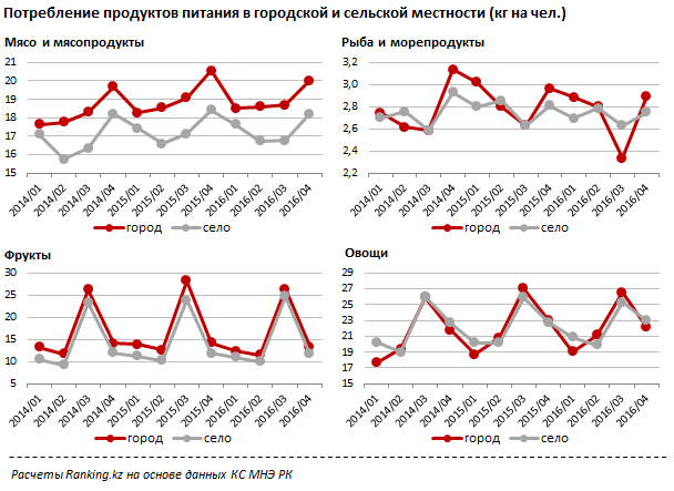 При этом овощей сельчане Казахстана в прошлом году стали есть в среднем больше, чем городские жители – на 1%. В 2015 году объем потребления был выше в городах – на 0,3%.