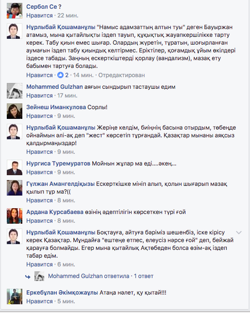 Журналистка Нәзия Жоямергенқызы выложила на своей странице в Facebook фотографию c подписью: «Что в Казахстане делает этот прибывший из Китая...?».
