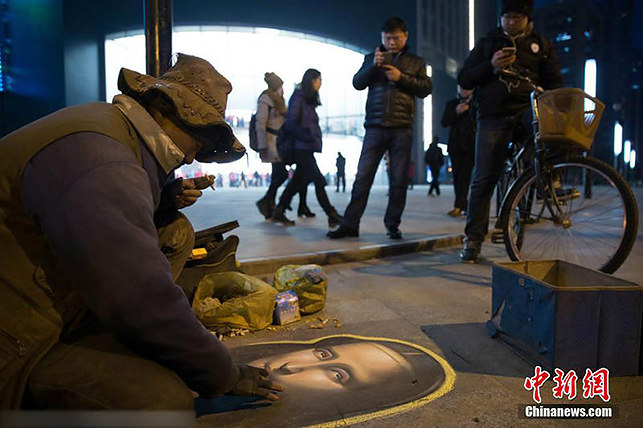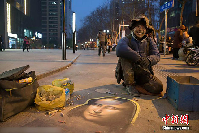Китайский бездомный нарисовал на асфальте Мону Лизу (ФОТО)