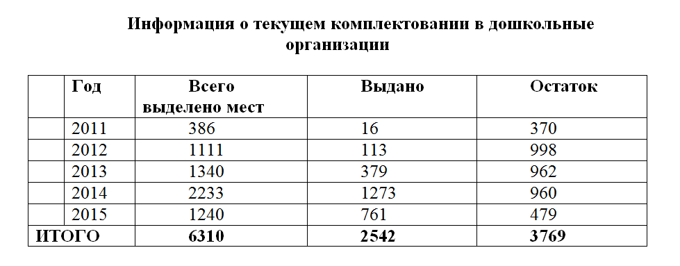 Из общего количества в 2017 году 386 мест выделено для детей 2011 года рождения, 1111 мест – 2012 года рождения, 1340 – для малышей 2013 года рождения, 2233 – 2014 года рождения и 1240 – для детей 2015 года рождения.