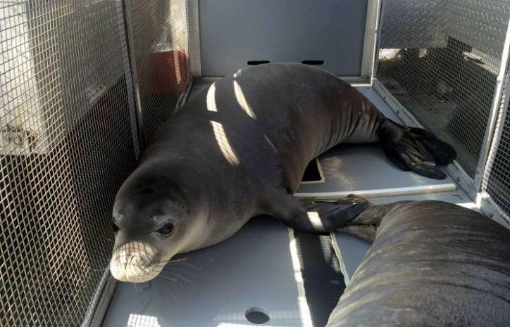 Речь идет о гавайских тюленях-монахах, которых осталось в мире около 1 200. Эти животные, находящиеся, по классификации ученых, на грани исчезновения, обитают и размножаются главным образом на северо-западных атоллах Гавайских островов.